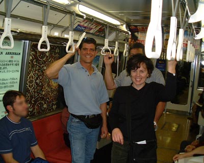 DAVID MCRAE AND JAUNITA RODGERS AT ON THE TRAIN IN TOKYO JAPAN.