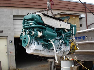 Starting in late April 2005 the Kuroshio went into refit. The refit started with the interior. This involved replacing all of the interior paneling. After all of the old paneling was removed it made sense to replace all of the wiring underneath the paneling. After all the wiring in the cabin was replaced and upgrades made to the electrical system, new paneling was installed. This turned out to be allot of work, but it turned out pretty good. While the interior was getting it's face lift, a new engine was being ordered. I Had some trouble getting an order put in for a new engine. Finally I got that figured. Next, I always thought there was a big warehouse full of marine transmissions. I was wrong. It looked like there was going to be a three month wait. Things didn't look good. Thanks to Ken Martin From Pacific Surface Drives I got one just as the engine was showing up. The job seemed like it was almost done. I Was wrong again, turned out most of the work wasn't done. So for 12 hours a day for the next 60 days I removed everything from the engine room, and with allot of cutting, grinding, cleaning, welding and fitting a new Volvo D-9 and Arneson Drive ASD-10 was installed, and the job was done.