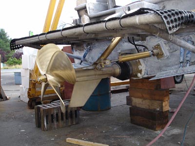 Starting in late April 2005 the Kuroshio went into refit. The refit started with the interior. This involved replacing all of the interior paneling. After all of the old paneling was removed it made sense to replace all of the wiring underneath the paneling. After all the wiring in the cabin was replaced and upgrades made to the electrical system, new paneling was installed. This turned out to be allot of work, but it turned out pretty good. While the interior was getting it's face lift, a new engine was being ordered. I Had some trouble getting an order put in for a new engine. Finally I got that figured. Next, I always thought there was a big warehouse full of marine transmissions. I was wrong. It looked like there was going to be a three month wait. Things didn't look good. Thanks to Ken Martin From Pacific Surface Drives I got one just as the engine was showing up. The job seemed like it was almost done. I Was wrong again, turned out most of the work wasn't done. So for 12 hours a day for the next 60 days I removed everything from the engine room, and with allot of cutting, grinding, cleaning, welding and fitting a new Volvo D-9 and Arneson Drive ASD-10 was installed, and the job was done.
