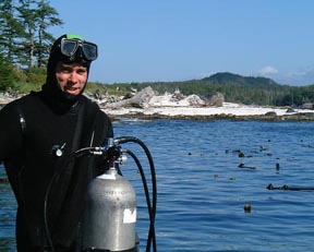 IS ONE OF THE DIVERS ONBOARD THE KUROSHIO. HE LIKES FISHING AND CHROME HARLEY