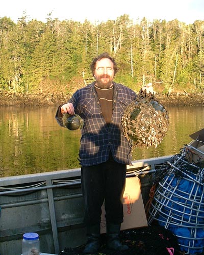 ![]() | Glass balls are abundant at certimes of the season. Gord on the Forager found the largest one floating just off shore. |