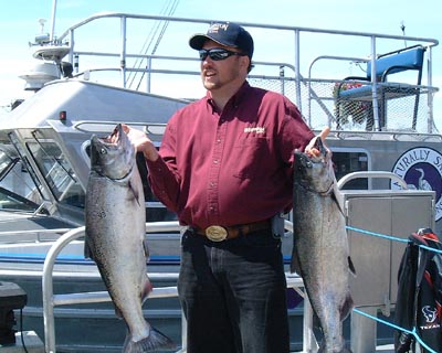 | Kuroshio Charters is located in the inner harbor of Victoria British Columbia, Canada. Sports fishing season last from April to September. Salmon fishing is the most popular fishing on board the Kuroshio. The Kuroshio is 35 feet long or 10.6m. All fishing gear is supplied and fishing licenses are for sale onboard. The cabin is heated making fishing an enjoyable experience in any weather. For more information contact David McRae at 250-812-1252. The fishing is world class catching all species of salmon, such as Chinook, Tyee, Spring, and Coho. Halibut and Cod fishing as well. |